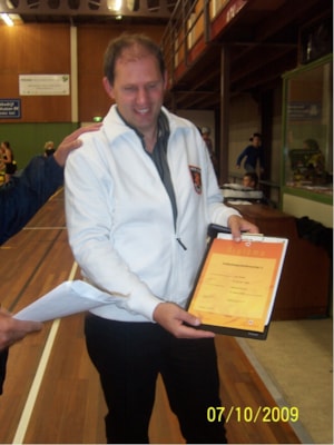 Na het volgen van de cursus VS2 afgelopen voorjaar, ontving Ton gisteravond na het fluiten van zijn eerste officiële wedstrijd zijn diploma.