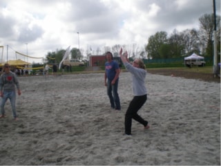 Kees Buter kreeg een splinternieuwe beach bal uitgereikt omdat hij de bedenker is van de naam “De Zandbak” . Tot slot beheerde Dinto penningmeester Cor Beemsterboer de BBQ en waren er sateetjes voor de liefhebbers.