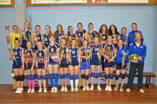 Dat alles verklaart dus het aantal van 22 speelsters die aandeel hebben gehad in dit kampioenschap. Sylvia die de meiden met veel enthousiasme coacht en wekelijks de wedstrijdtenues wast ontbreekt helaas op de foto, maar de bloemen die trainer Joop in handen heeft zijn keurig aan Sylvia gegeven.