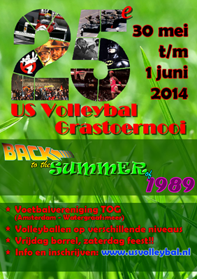 In het weekend van 30 mei t/m 1 juni 2014 organiseert US Volleybal het US Grasvolleybaltoernooi. Een echte must voor de buitensportliefhebber. Er wordt op het gras in teams van 3 gevolleybald. Deelname is voor alle niveaus mogelijk (zowel volleyballers als niet volleyballers) en naast een fantastisch volleybalweekend zorgen we natuurlijk weer voor een supersfeer, met o.a. een borrel en een feest. Het toernooi zal ook dit jaar weer plaatsvinden op de prachtige voetbalvelden van TOG in Amsterdam Watergraafsmeer.