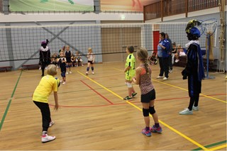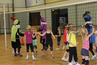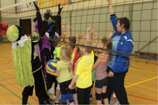 De zwarte pieten hebben ook hier nog even hun Spaanse volleybal kunsten vertoond.