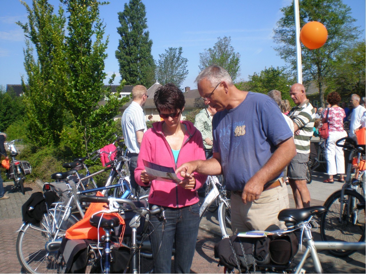 Om 10.00 uur werd er gestart bij de Rabobank, na het in ontvangst nemen van de routebeschrijving, een vlaggetje voor aan de fiets en een knal oranje rugzakje, ging het op de pedalen. Via Tuitjenhorn, Waarland, met een koffiestop in Langedijk, richting Geestmerambacht en voor je het wist zaten de 30 km er op en waren we weer terug in Warmenhuizen. Bij de Rabobank, controle van de stempelkaart en dat was het. De penningmeester kan € 300,- tegemoet zien.