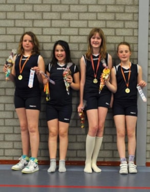 Maar liefst 11 CMV-teams van Dinto hebben medailles behaald in de competitie. Op alle niveaus vielen de ploegen in de prijzen. In niveau 1 was er zilver voor D17 en brons voor D18. Op niveau 2 was het gehele podium blauw gekleurd. Goud en het kampioenschap was er voor de jongens van D9. Zilver voor D14 en brons voor D12. Bij niveau 3 was er een fraaie zilveren medaille voor D7 en brons voor D8. Bij niveau 4 viel D5 net buiten de prijzen met een mooie vierde plek. Op niveau was het tot het allerlaatste moment zeer spannend. In de finale wisten de meiden van D4 het kampioenschap ten koste van Relay binnen te halen. Op het hoogste niveau 6 was D1 dit seizoen ongenaakbaar. Met 35 winstpartijen werden de meiden terecht kampioen. De winterkampioen van niveau 5 , de meiden van D2 klommen fraai naar een bronzen plek. Al met al een mooi succes voor onze vereniging. Volgend seizoen starten we met 20 teams en gaan we weer voor een sportief en gezellig seizoen.