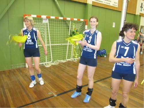 Afgelopen zaterdag 17 april was het de laatste wedstrijd voor 3 speelsters van dames 2. Na jarenlang een stempel op de volleybalvelden te hebben gedrukt vinden zij het mooi geweest. Sylvia Mooij, Linda van Dijk en Jacqueline Staal werden door de voorzitter toegesproken en in de bloemetjes gezet.