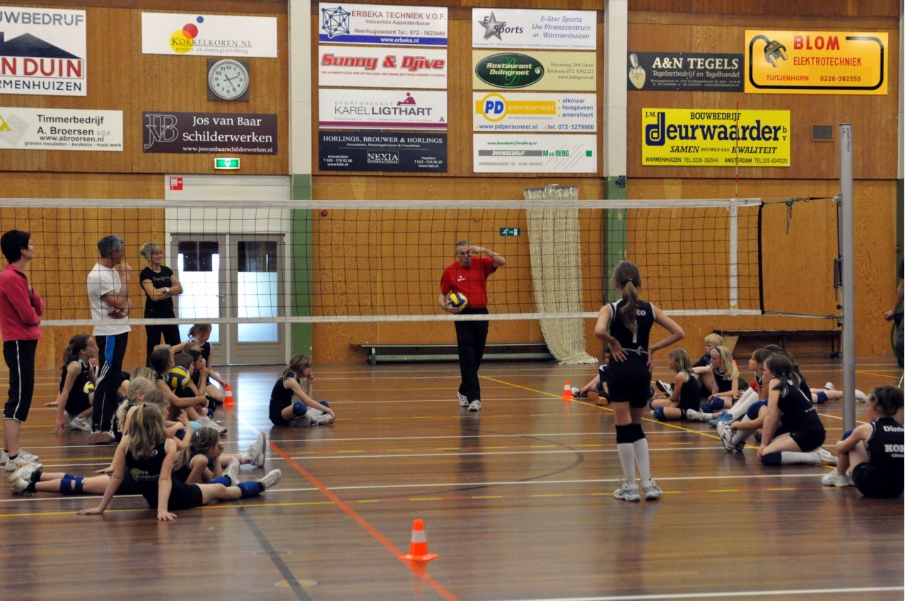 Noij liet met uitdagende vormen aan de ruim aanwezige volleyballertjes zien, hoe je het beste in het veld kunt bewegen. Ook de technische vaardigheden kwamen ruim aan de orde. Jeugdvoorzitter Peter Jongejan was uitermate tevreden over de invulling van de middag. “Deze man weet een volledige sporthal in beweging te krijgen. Ik heb diverse trainers van ons gesproken,die aan de clinic meegeholpen hebben en zij geven allemaal aan dat ze zeer uitdagende en nuttige oefenstof voorbij hebben zien komen. Twee weken terug hadden we al een prima trainingssessie met de oudere jeugd van TVC Amstelveen. Nu hebben we onze jongste jeugd minstens zo’n mooi spektakel kunnen bieden.”