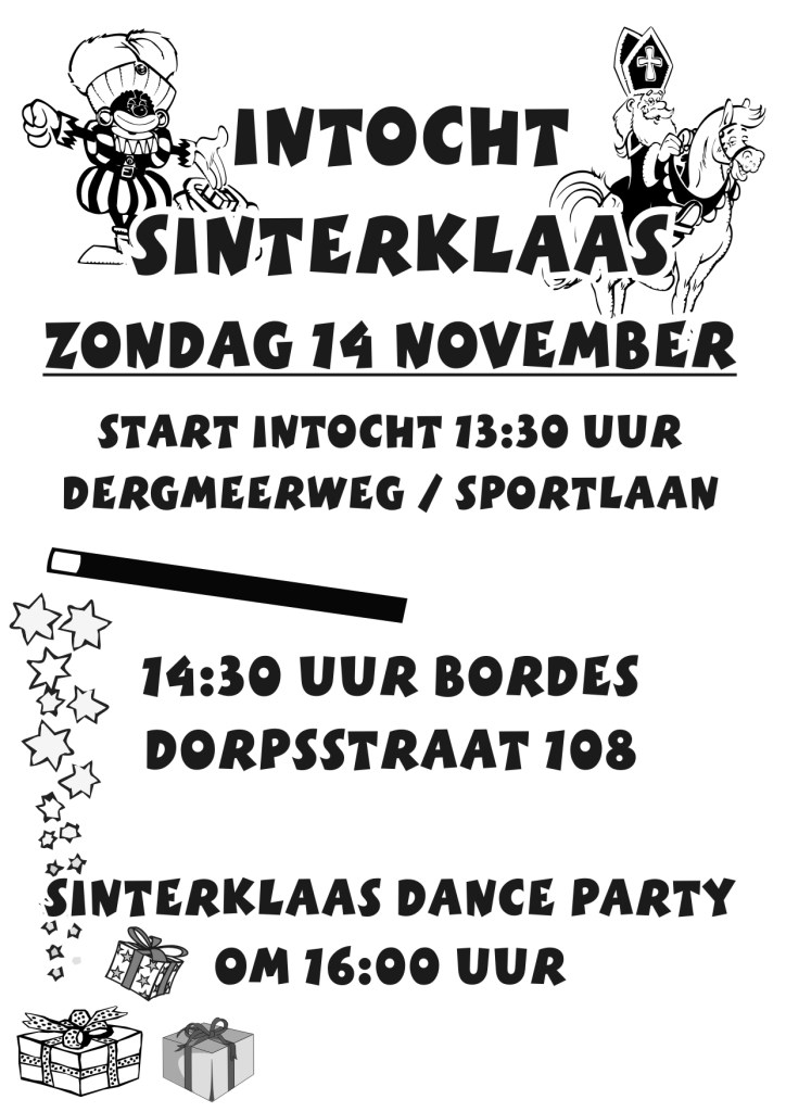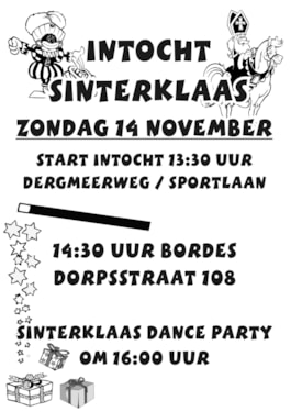 Sinterklaas start om 13.30 uur met zijn Pieten aan de intocht door Warmenhuizen. De drumband loopt voorop om de sfeer er alvast lekker in te brengen met de welbekende Sinterklaas deuntjes. Sinterklaas zou het ook dit jaar weer heel leuk vinden als de mensen langs de route hun vlag buiten zouden willen hangen!!