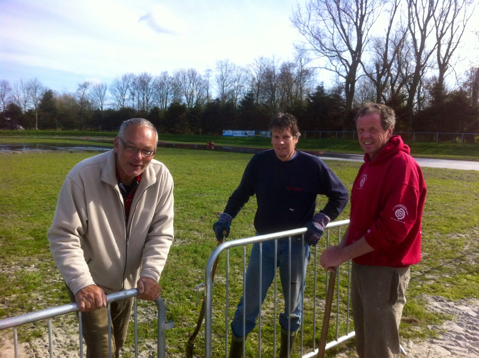 • Bouwploeg hard aan het werk met het plaatsen van de hekken bij Beachvolleybalvereniging de Zandbak
