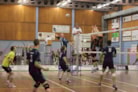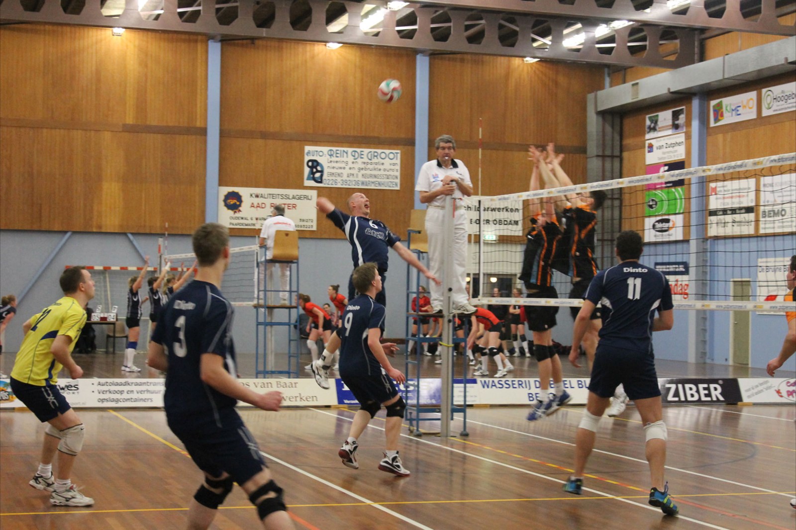 De mannen startten tegen de gedoodverfde kampioenskandidaat VC Allvo voortvarend. Met Mark Vis, Dion Berkhout en Buck Glas als jeugdige spelers in de basis werd het de Almeerders behoorlijk lastig gemaakt. Na een goede opslagserie van Erik Mulder, wist ook Dion Berkhout de passing van de tegenstander te ontregelen. De fraaie 7-1 voorsprong werd echter snel teniet gedaan. Het was duidelijk dat de geblesseerde Rick van Broekhoven in het centrum node gemist werd, volgens stopperloper Joost van den Berg. “Er gaat van Rick zoveel dreiging uit, dat hij de blokkeerders aan zich weet te binden. Nu hadden we steeds op de flanken een huizenhoog blok tegenover ons staan. Dan wordt het lastig om te scoren. Jean Dekker maakte gelukkig nog wel een prima invalbeurt.” Coach Rick Breeuwer was over de eerste twee sets niet ontevreden. “We speelden niet verkeerd en hadden de derde set misschien kunnen winnen, maar drie opslagfouten nekten ons.”Setstanden: 21-25;16-25;20-25;16-25.