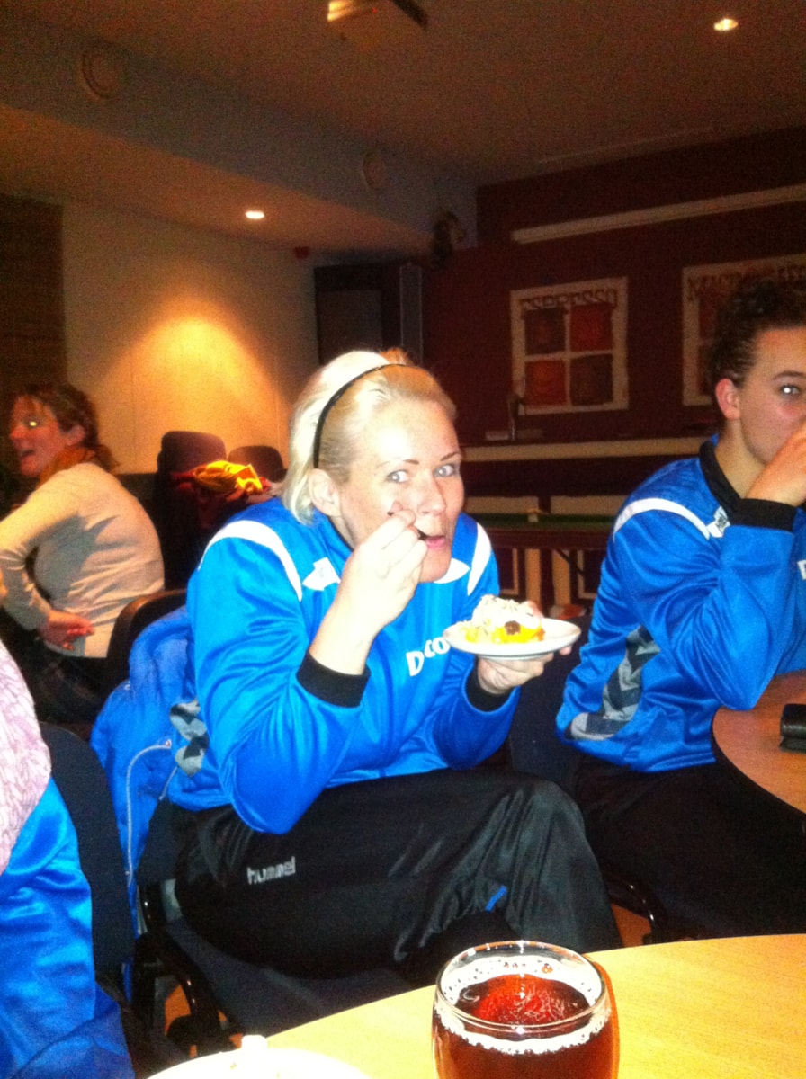 Bij onze laatste thuiswedstrijd na de overwinning van 3-1 tegen Madjoe hebben we genoten van de heerlijke beroemde bokkenpootjestaart van “Leonie”