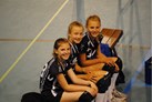 De laatste wedstrijd om de 3e en 4e plaats was er eentje van ontlading en veel spelplezier. Tegen Somas/activa draaide het allemaal om veel spelvreugde en er werd vrijuit gespeeld. We hoefden niet te winnen hielden we onszelf voor, maar door het uitzinnige plubliek inclusief de C en B meiden, groeiden we boven onszelf uit. We gingen geloven in de winst en vieren de punten met veel blijheid, met 25-23 wonnen we de set. Na een gewijzigde teamsamenstelling, we wilden dat iedereen speelde, gingen we op de zelfde voet verder en ook deze set werd met 25-22 gewonnen. Door dit resultaat,waren we uitzinnig van vreugde met de behaalde 3e plaats !