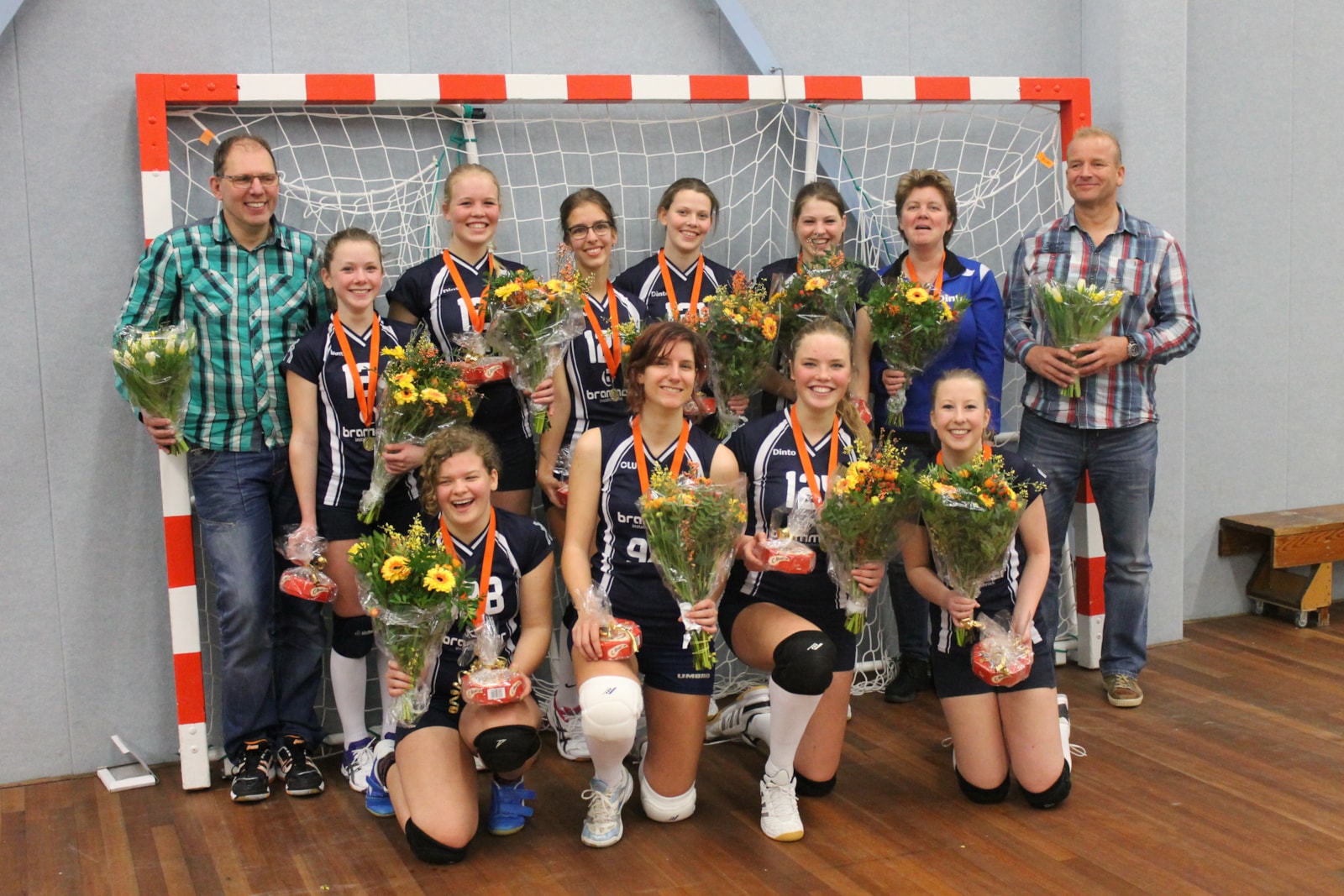 Het team was zaterdag voltallig aanwezig. Rosalie Bes, Britt Wijnker, Lianne Wempe, Anouk Vollebregt, Maaike Mosch, Amy Beesterboer, Eva Jonk, Sanne Brammer en Caroline Kaandorp moesten tegen Polisport uit Schagen. De vorige keer was het een volle 4-0 overwinning. Na twee gewonnen sets (25-12 en 25-21) wisten de speelsters dat het kampioenschap binnen was en de blijdschap was er volop. Echter Polisport won daarop de 3e set. De achterstand werd telkens geprobeerd terug te halen, maar helaas lukte dat niet (20-25). De speelsters wisten zich weer allemaal te hervatten en deden wat van een kampioen wordt verwacht en wonnen de 4e set met 25-10.