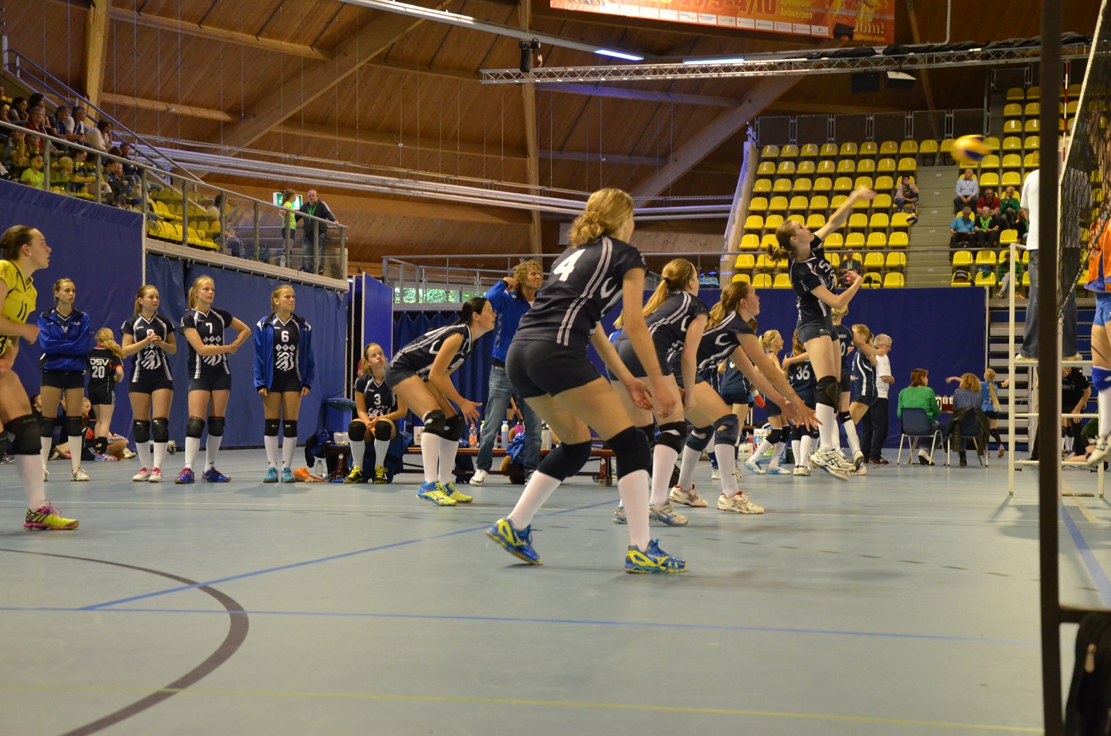 Bij aankomst waren de eerste poulewedstrijden reeds begonnen en konden onze teams zich ook voorbereiden. Alle drie de team speelden naast elkaar en dat in een immens grote sporthal.