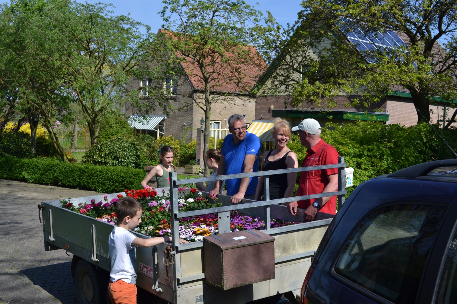 Afgelopen vrijdag 6 en zaterdag 7 mei hebben vrijwilligers van Dinto onder leiding van de sponsorcommissie van Dinto zich weer uitgesloofd om vele (hang)geraniums , fuchsia’s en Spaanse margrieten huis aan huis te verkopen. Aan het weer heeft het zeker niet gelegen, wat een prachtig weer was het.