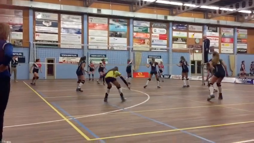 Beginopstelling Bejo/Dinto: Amber Jongejan;Linda Schipper;Renske Meijer;Lynn Delver;Indra Top;Misha Nannes;libero Jente Schrieken.
