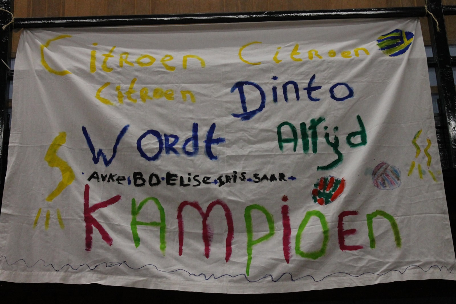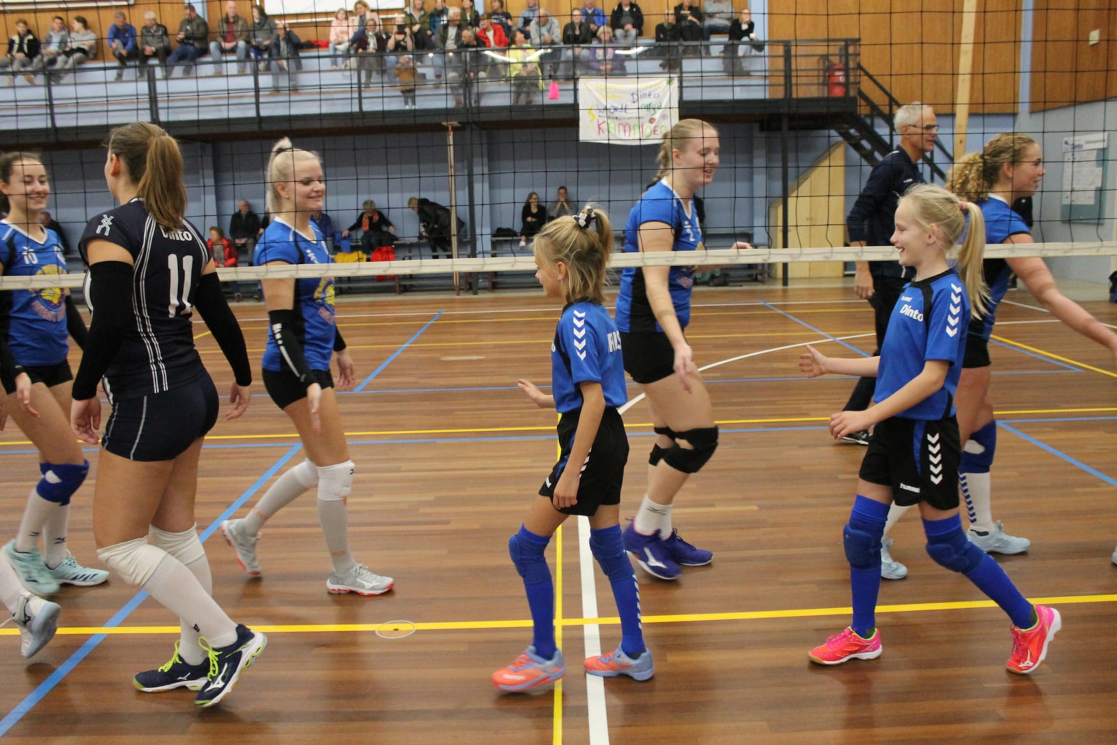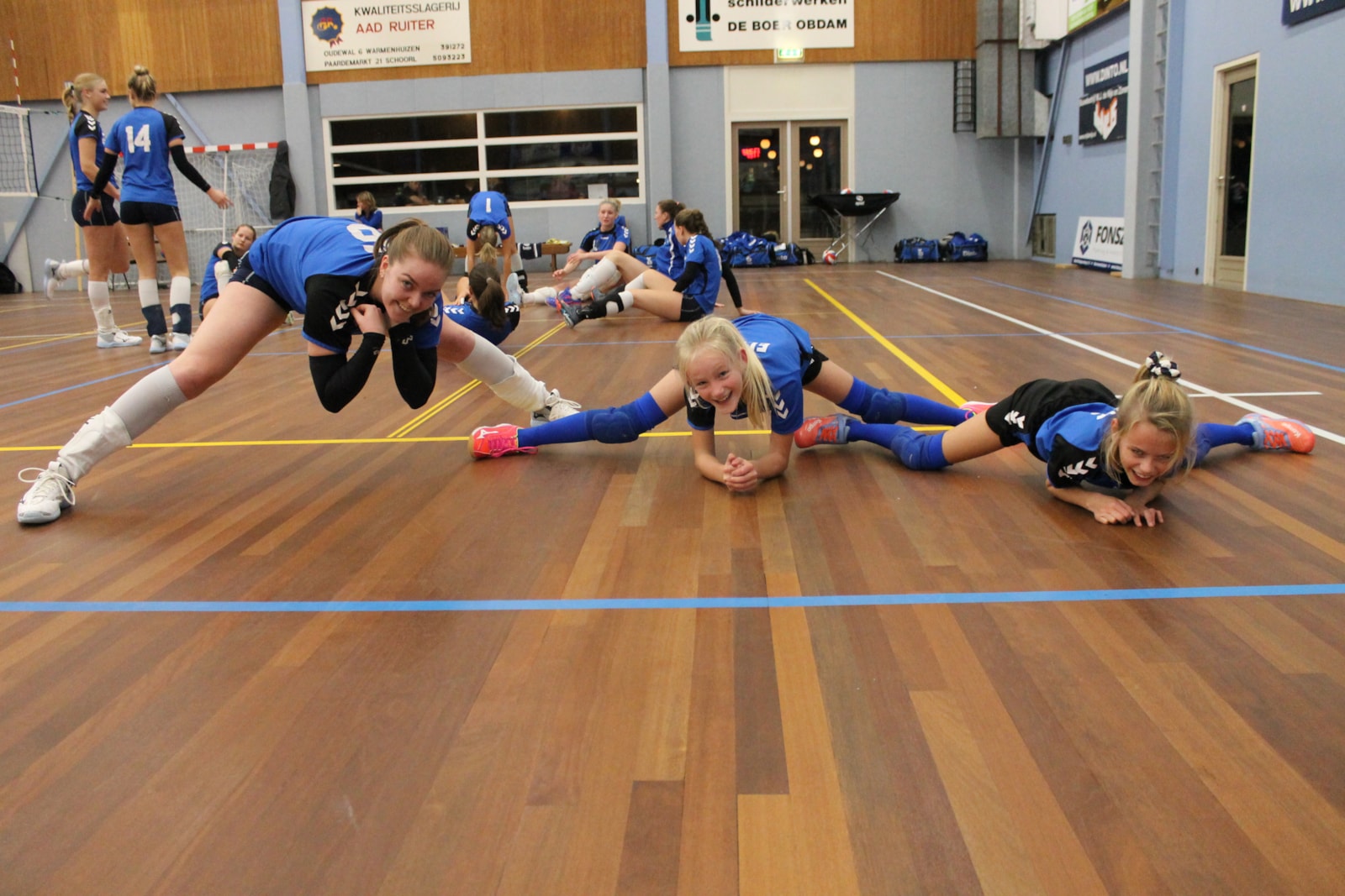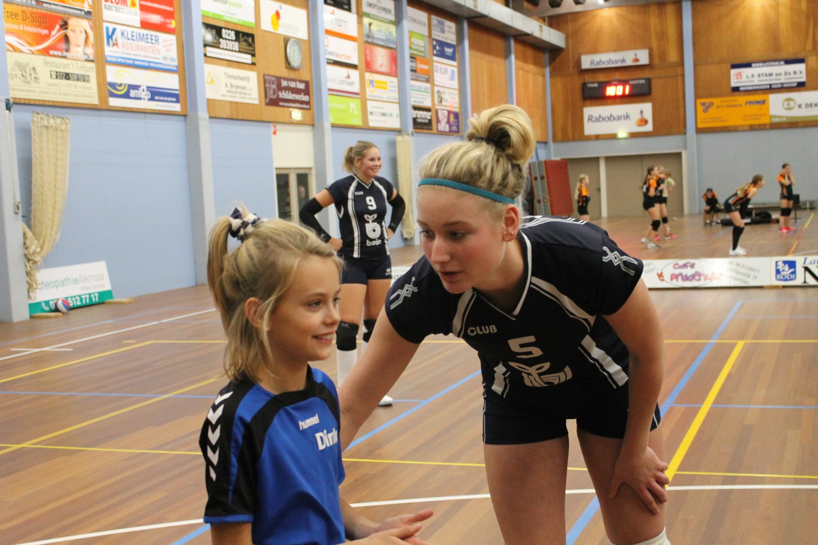 Na de warming-up en het inspelen samen met Elise mocht Iris de eerste bal serveren en dat ging super goed! Met een applaus van alle volleybalsters verliet zij het veld en ging de wedstrijd beginnen. Dinto won met 3-1