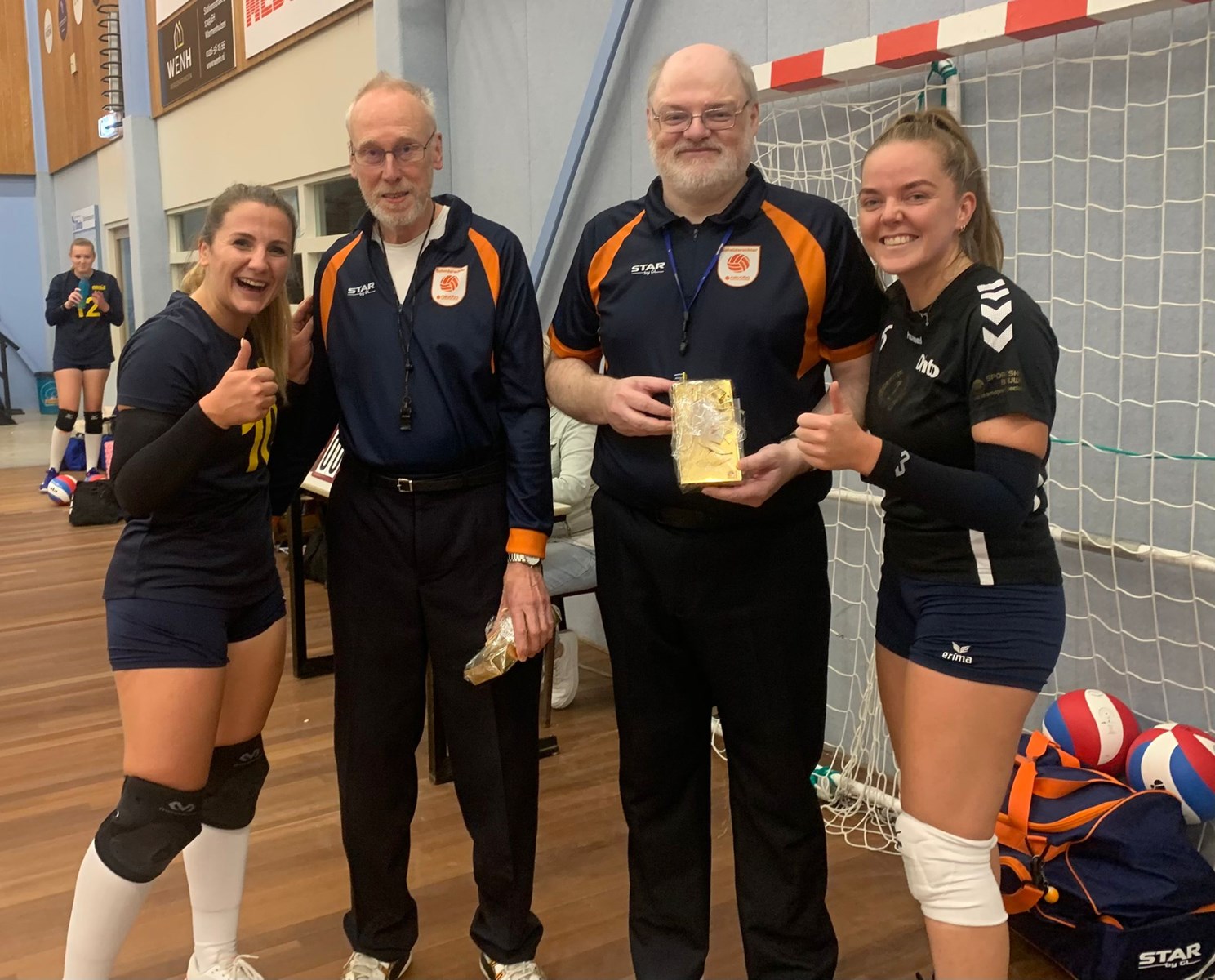 Op bijgaande foto’s worden bij de wedstrijd van dames 1 tegen Havoc de scheidsrechters Richard Weenk en Frans van Tol in het zonnetje gezet. Op de andere foto van eerdere datum onze eigen Dinto scheids John Berkhout.