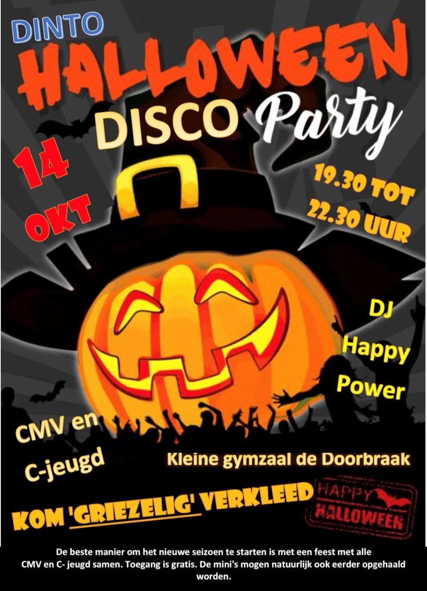 Op 14 oktober wordt een griezelige Disco Party gehouden voor CMV en C jeugd!!