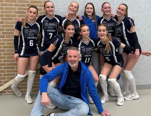 Fleur Burger (Midden), Meis Bos (Spelverdeelster), Danie Croon (Buiten), Maud Wagenaar (Buiten), Evi Eriks (Buiten), Charlotte Zutt (Midden), Indy de Langen (Spelverdeelster), Tess Mosch (Midden), Sophie Bekker (Buiten) en Dennis Stam (Coach)