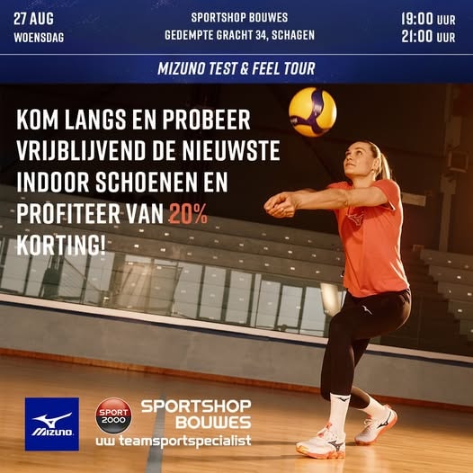 Sportshop Bouwes, Gedempte Gracht 34 te Schagen, op woensdag 27 augustus van 19:00 tot 21:00 uur.