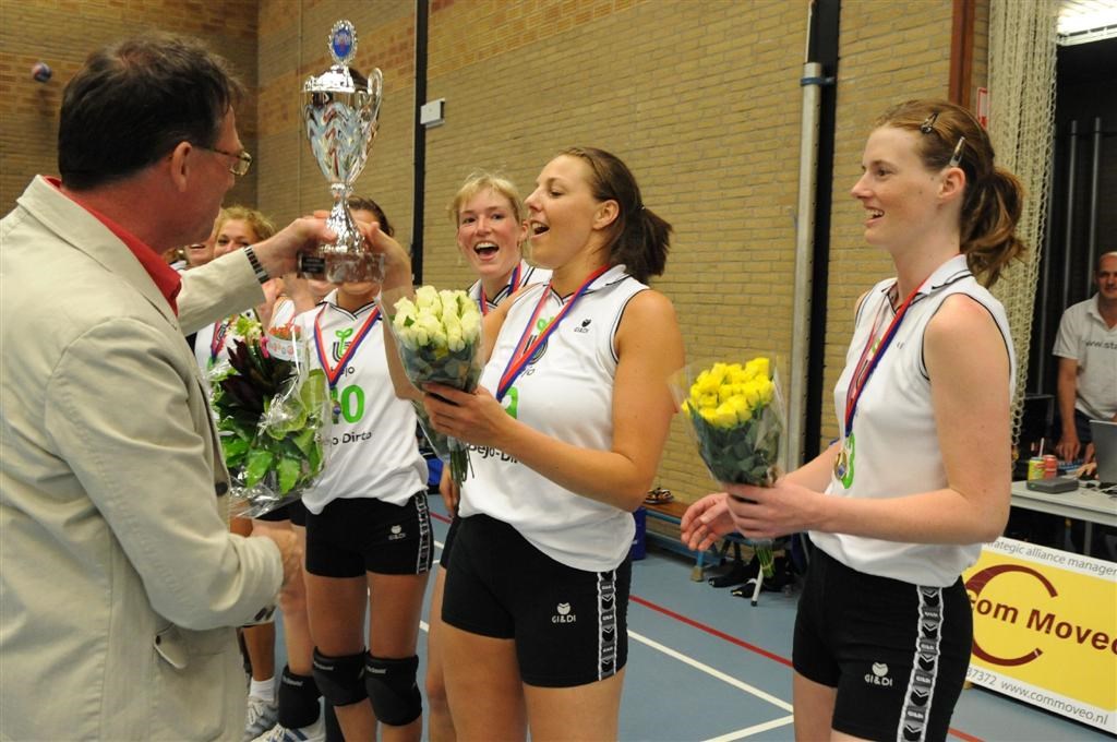 Coach Rick Breeuwer roemde het niveau van zijn vrouwen. “We waren met name de eerste sets superieur. De sporthal was volledig gevuld en het duel speelde zich daardoor af in een geweldige entourage. Sovoco had de strijd om de titel in de reguliere competitie van ons verloren en kon het seizoen met deze finale nog redden. We werden echter juist gedragen door deze sfeer en lieten het beste spel van dit jaar zien.” Bianca Stoop vervulde in de aanval een zeer belangrijke rol. Hoog opspringend liet de jeugdige flankspeelster haar lange blokkering vaak ontredderd achter. Ook Simone van Haneghem was voor de uitstekend spelende Geertje de Groot een zeker aanspeelpunt. Sovoco serveerde zuiver en met veel risico. De passing van Linda van Dijk en Inge Ligthart liep desondanks als een trein. De thuisclub leunt normale gesproken flink op een lange centrumaanvalster. Deze had echter tegen de slim blokkerende Esther Smit geen kans. Na een terugval in de derde set herpakte Dinto zich door een 0-8 voorsprong op de service van Geertje de Groot. Sovoco moest wederom haar meerdere erkennen in de Warmenhuizer hoofdmacht. Het zorgde voor een passende afsluiting van een voortreffelijk seizoen.