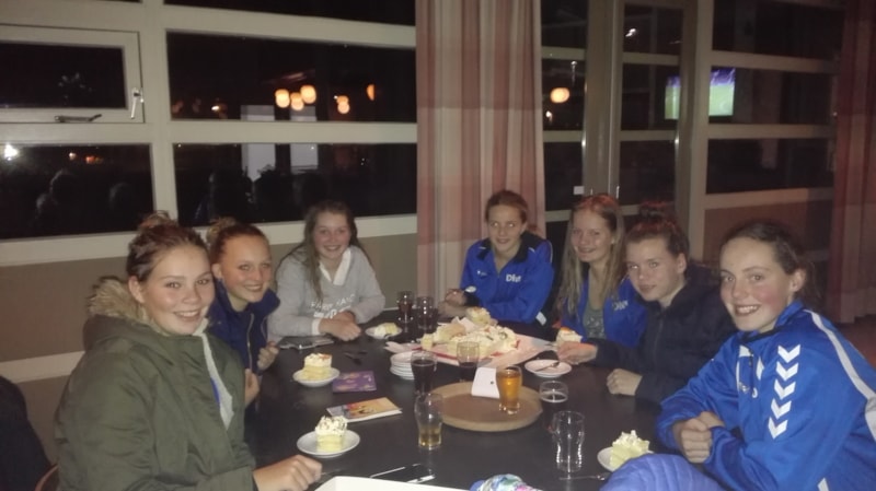 Dames 3 heeft in de Doorbraak volop genoten van de taart die ze hadden gewonnen met de donateursactie. Doordat ze de meeste kaarten verkochten en daarmee 217 euro binnenhaalden  kregen ze een lekkere slagroomtaart. Na de net verloren wedstrijd tegen Madjoe was het dus toch even…