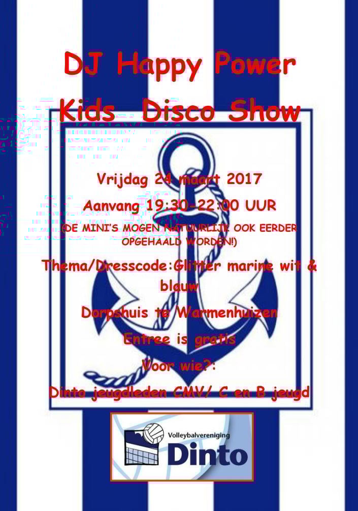 Op 24 maart wordt er in het Dorpshuis weer een Disco georganiseerd voor de Dinto jeugd.