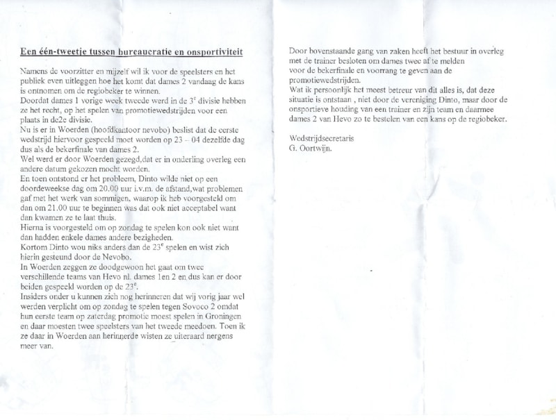 De wedstrijd, zou eigenlijk een paar weken geleden gespeeld worden, maar door het ontbreken van voldoende spelers bij de gasten, werd de partij uitgesteld.